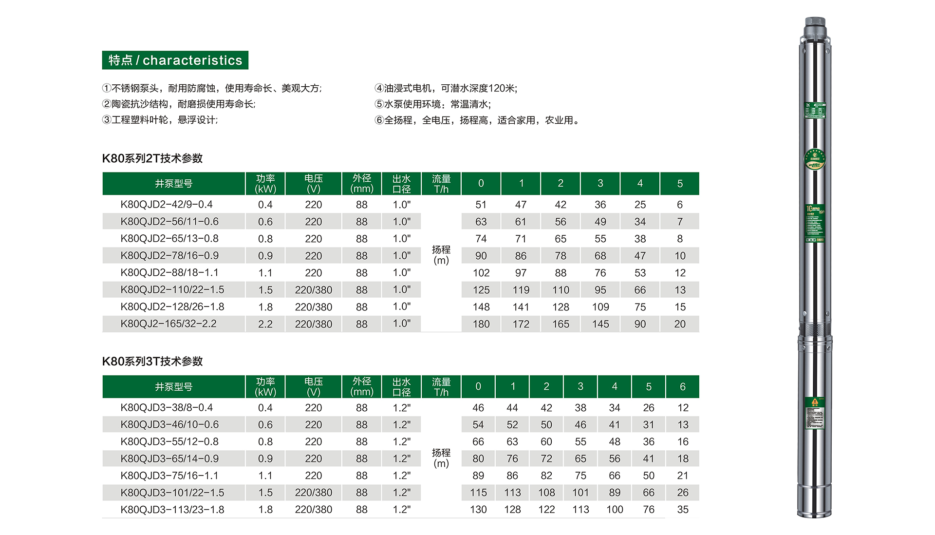 K80(單級(jí)浮動(dòng))分體系列不銹鋼井用潛水泵